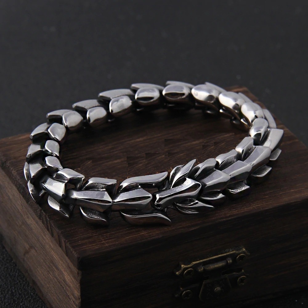 Massivt armband för män med en drake