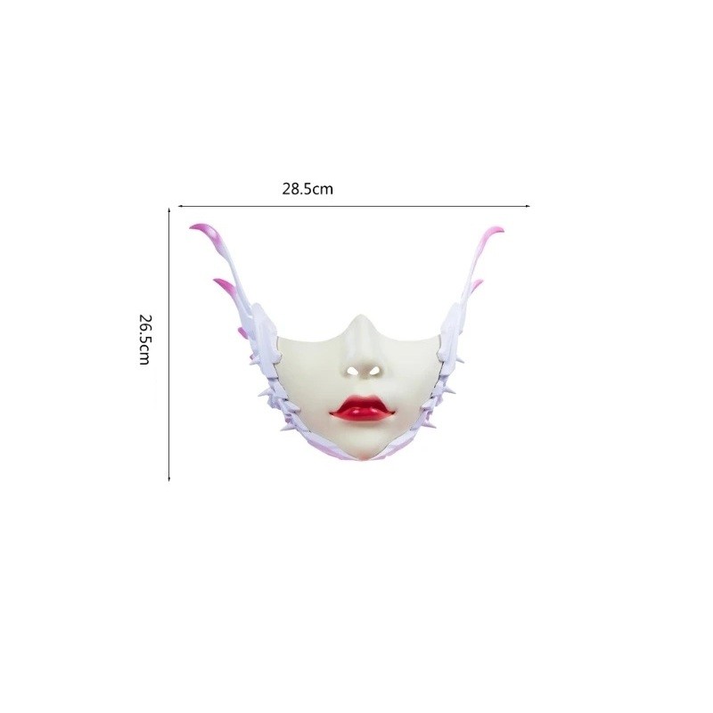 Med sin genomarbetade design passar masken inte bara för maskeradbaler, utan även för cosplayevenemang och teaterföreställningar. Dess kombination av läppstift och järnelement ger en futuristisk, gotisk och spöklik känsla, vilket gör den till en universell rekvisita för olika stilar och teman.