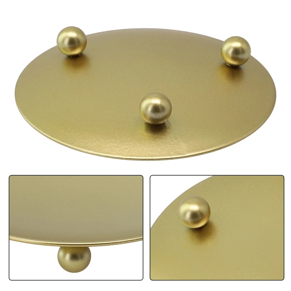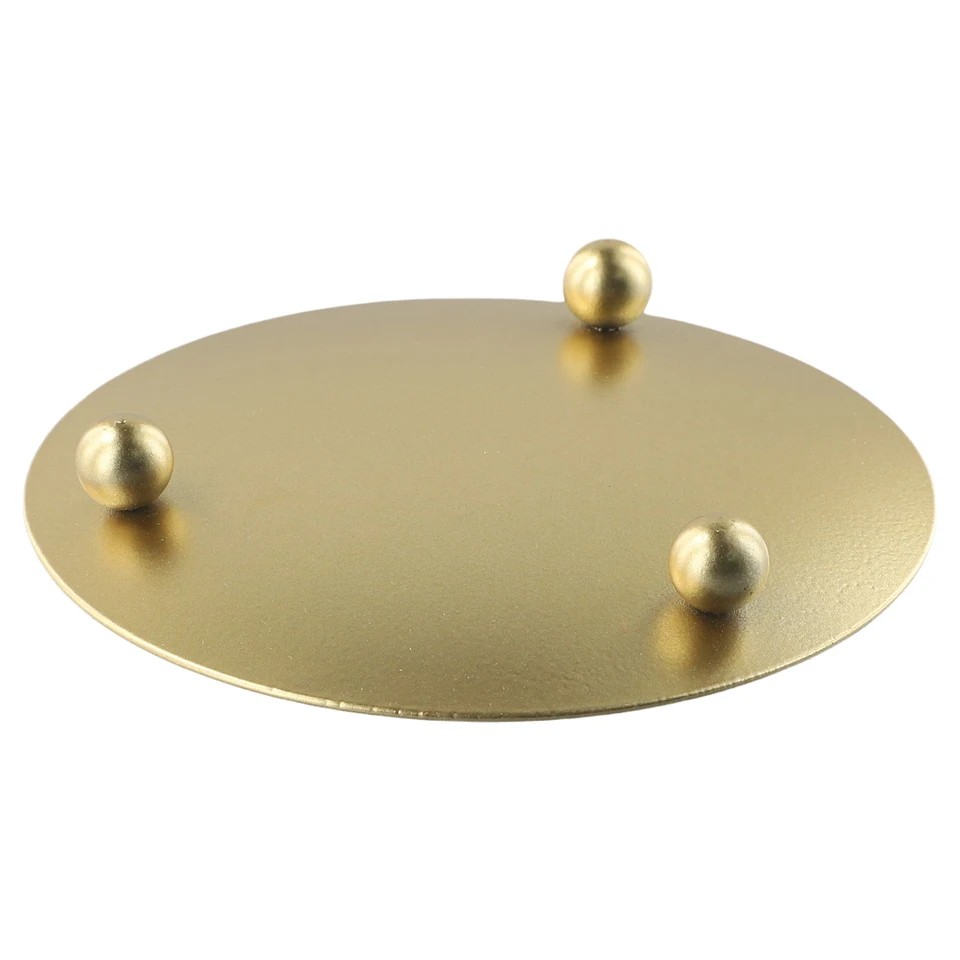 Metallfat för ljus med en diameter på 11 cm Dekorativ underlägg för ljus ytskydd inredningsdekoration Dekorativt fat för ljus med större diameter är ett praktiskt tillbehör för att skydda möbler och ytor. Det är lämpligt för större ljus, ljusstakar eller dekorativa arrangemang med ljus. Den runda formen och den enkla designen gör det lätt att matcha med olika inredningsstilar. Fatet fungerar både som en skyddande underlägg och ett estetiskt tillägg. Avsett enbart för dekorativ användning.