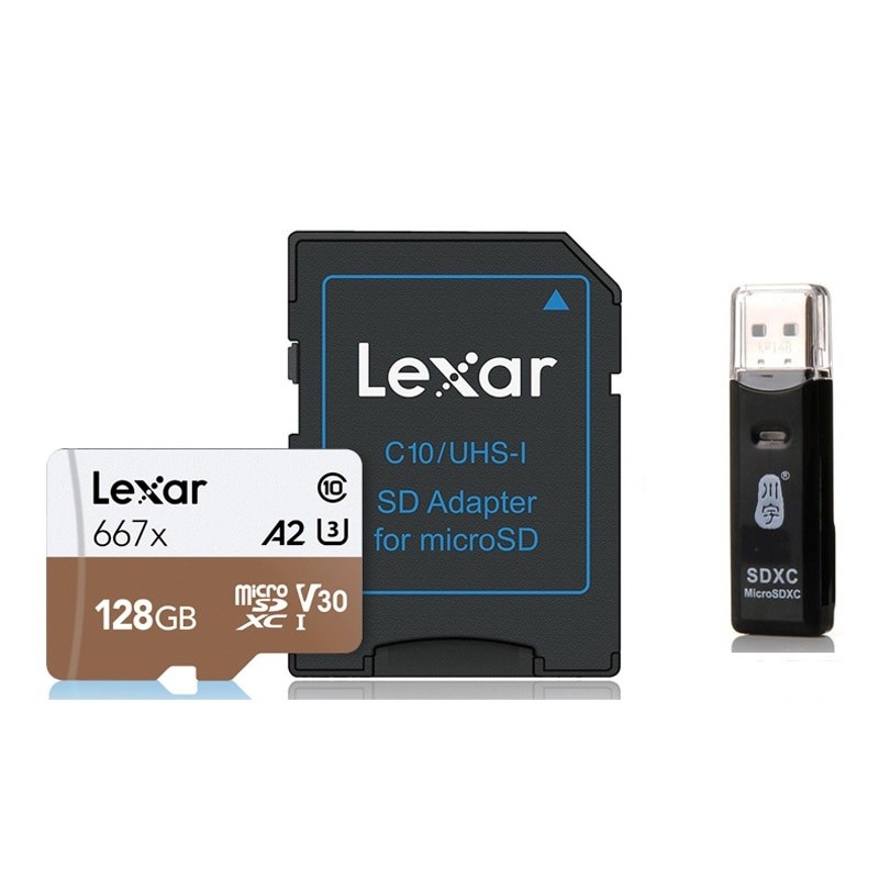 Paketets innehåll: 1x Micro SDXC-kort, 1x adapter, 1x USB-kortläsare