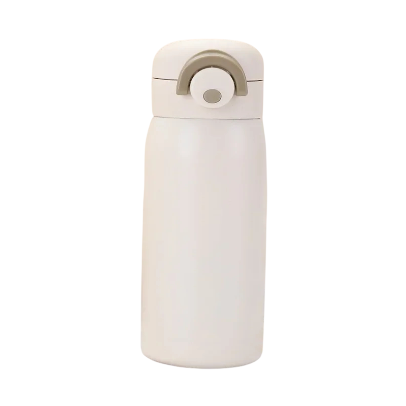 Mini termosk med förslutningsbart lock 350 ml 17,5 × 6,5 cm Rostfritt stål Beige bärbar termos för drycker till arbete, skola och resor