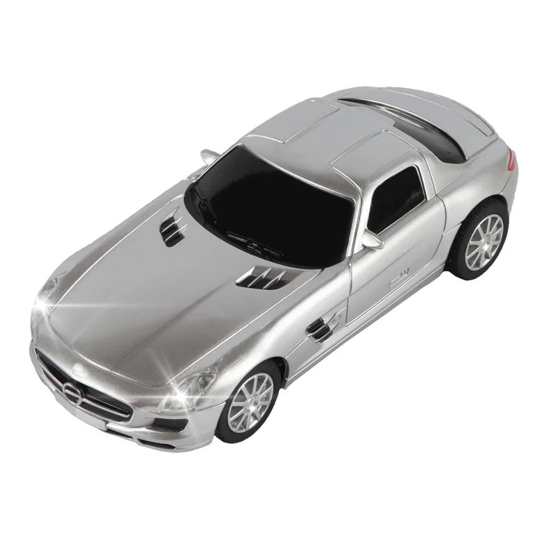 Modell av bilen Mercedes-Benz SLS AMG 1:43 Silver plastmodell av sportkupé Detaljerad miniatyr av lyxbilen Leksak för barn Present
