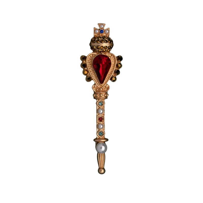 Elegantt modeaccessoar med kungliga motiv, fina stenar och pärla, som ger outfiten en nobel detalj och personlig stil. Fullständig beskrivning