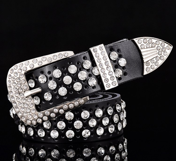 Ett modernt läderbälte med lyxiga strass kommer att berika varje kvinnas garderob.