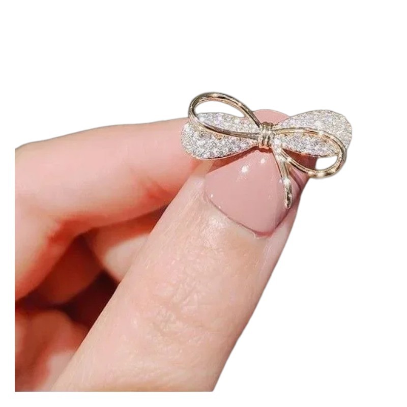 Denna modetillbehör i form av en rosett är ett subtilt men iögonfallande tillbehör som ger varje outfit en elegant accent. Tack vare den kompakta storleken 1,8 cm framstår den diskret men fångar ändå uppmärksamhet med sin precisa utförande. Kvalitativ zinklegering säkerställer styrka och stabilitet i formen vid vanlig användning. Dekorativa stenar ger broschen en subtil glans som passar både till vardagskläder och festliga tillfällen. Broschen kan enkelt kombineras med kappa, kavaj, klänning och väska.