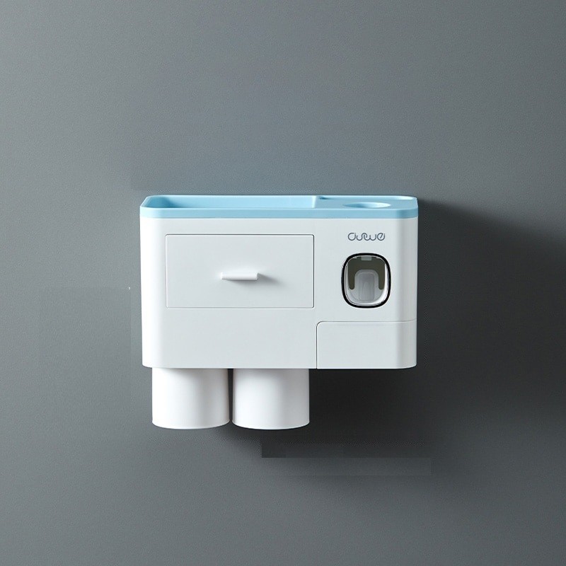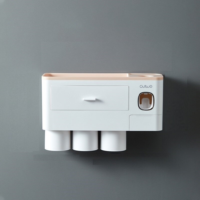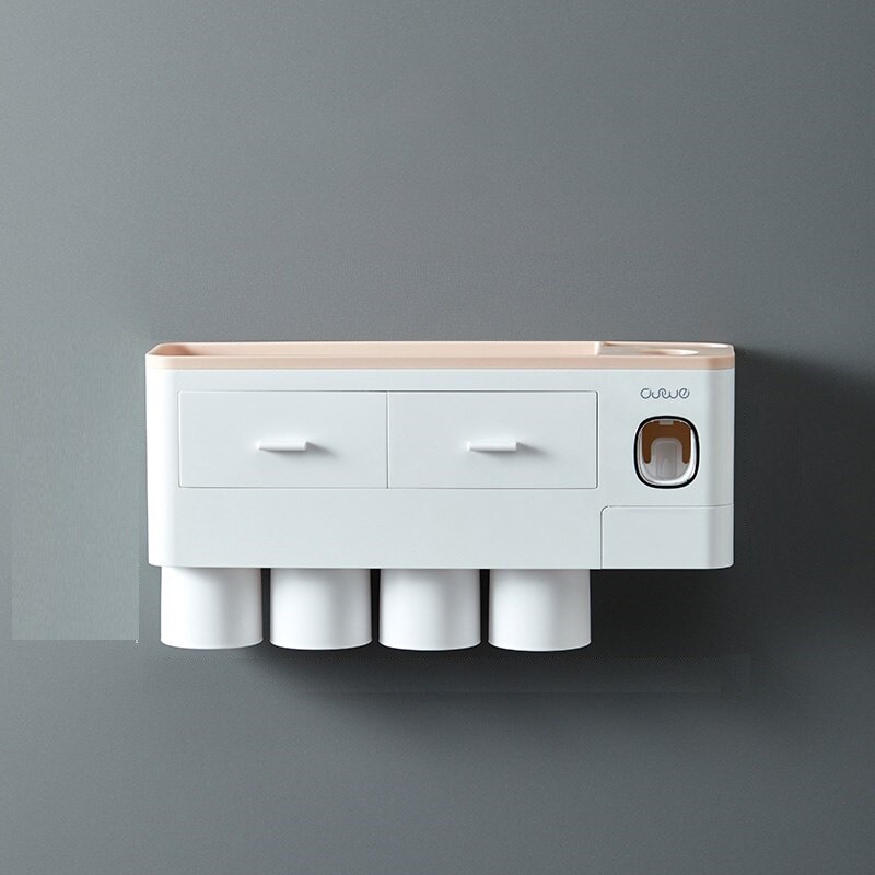 Den innehåller en tandkrämsdispenser, tandborsthållare, mugghållare och en liten låda.