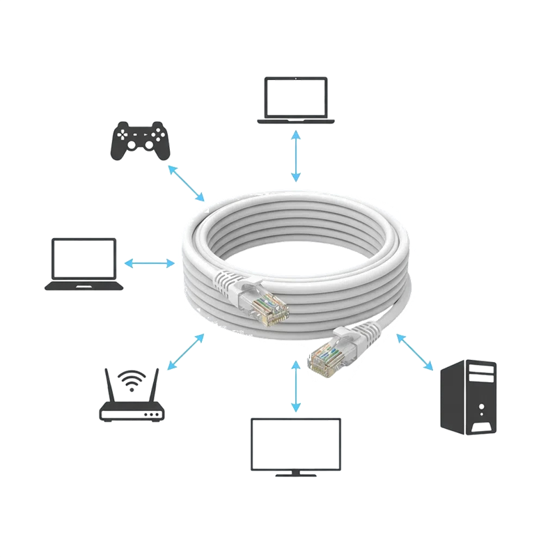 Kabeln använder standard RJ45-kontakter som är allmänt kompatibla med ett brett spektrum av enheter. Anslutningen är enkel och kräver ingen ytterligare installation. Den används vid vardagligt arbete på datorn, streaming av onlineinnehåll och spelande över internet.