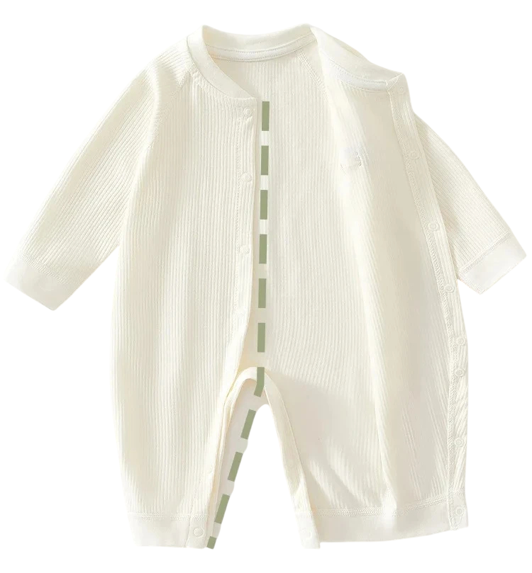 Nyfödd overall i bomull med hundmotiv Enfärgad design Med tryckknappar Rundad halsringning För pojkar och flickor Bekväm barnpyjamas