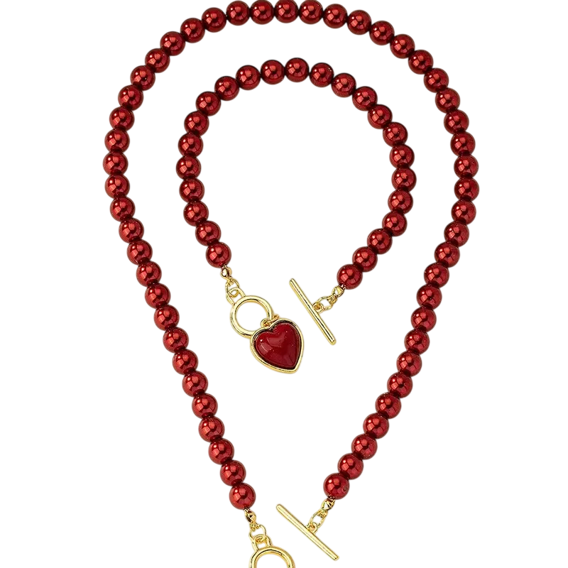 Oemotståndlig set med pärlhalsband och armband representerar tidlös elegans som aldrig går ur modet. Fina kulor ger en romantisk och sofistikerad känsla och kompletterar enkelt både festliga och vardagliga outfits. Halsbandet med en längd av 44 cm följer naturligt linjen av halsen, medan armbandet på 21 cm sitter bekvämt på handleden och skapar en harmonisk helhet. Smyckena är tillverkade av zinklegering, vilket säkerställer hållbarhet och lång livslängd vid vanlig användning. Detta eleganta pärlset är det perfekta valet för tjejer och kvinnor som älskar klassisk stil med en subtil touch av lyx.