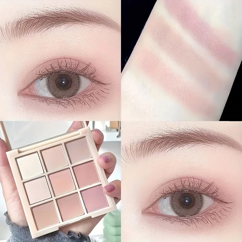 Ögonskuggspalett 9 färger Matt och lätt skimrande nude nyanser Långvarig fuktgivande sammansättning multifunktionell makeup Multifunktionell ögonskuggspalett innehåller 9 noggrant utvalda nyanser i naturliga nude och rosa-beiga toner. Kombinationen av matta och lätt skimrande färger möjliggör att skapa en diskret dagmakeup såväl som en mer framträdande kvällslook. Nyanserna är utformade för att enkelt kunna kombineras och byggas upp utan skarpa övergångar. Tack vare den kompakta förpackningen är paletten idealisk för handväskan och resor. Den mjuka texturen stödjer jämn applicering och enkel blandning. De ljusare nyanserna kan användas för att lysa upp ögonlocket eller området under ögonbrynet, medan de medelstarka tonerna används för naturlig skuggning och de mörkare färgerna för att fördjupa blicken. Med den balanserade färgkombinationen kan du skapa en komplett ögonmakeup med endast en palett. När den används med en primer behåller makeupen sin fräscha look hela dagen.