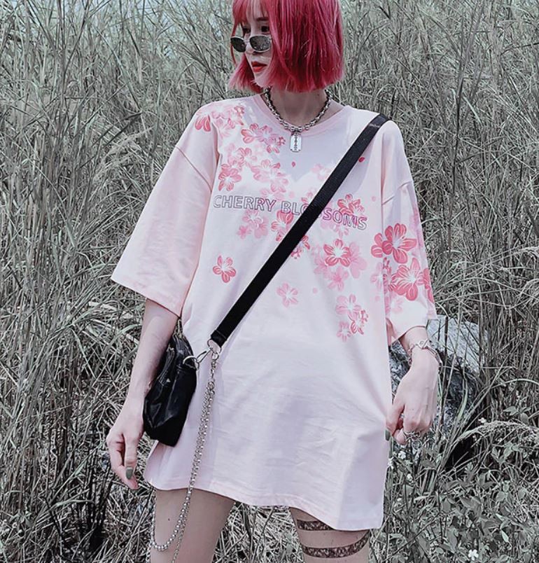 Oversized t-shirt för kvinnor med blommor A1201
