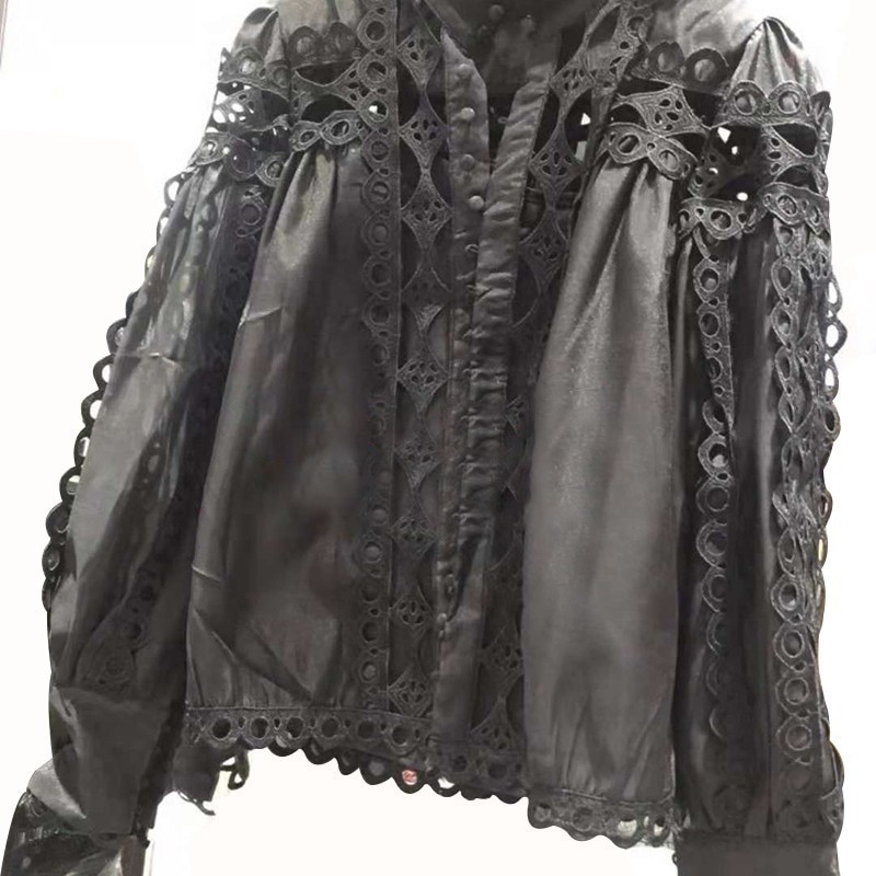 Dekorativa perforeringar och långa ärmar.