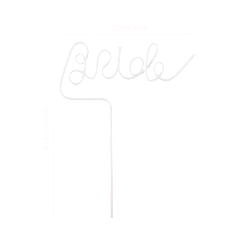 Detta dekorativa plastiska sugrör med texten Bride (Brud) är ett originalt tillbehör för möhippa eller bröllopsfest. Den framträdande texten i form av dekorativ skrift ger en lekfull och festlig känsla och framhäver tydligt brudens huvudroll. Den vita färgen kombineras enkelt med andra bröllopsdekorationer och framträder vackert på fotografier. Sugröret är lätt och tack vare de större måtten är det omöjligt att missa.
