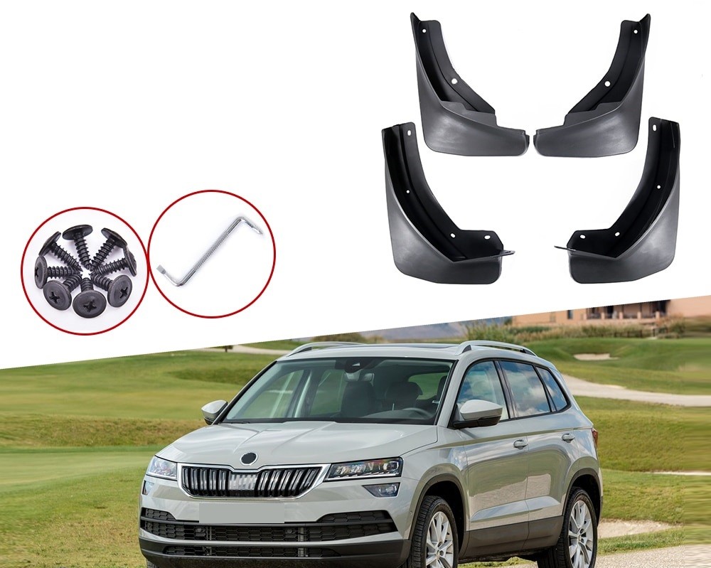 Sats med fyra plastskärmar avsedda för Škoda Karoq 2017–2019. Skyddar karossen mot smuts, vatten och grus. Enkel montering. Fullständig beskrivning