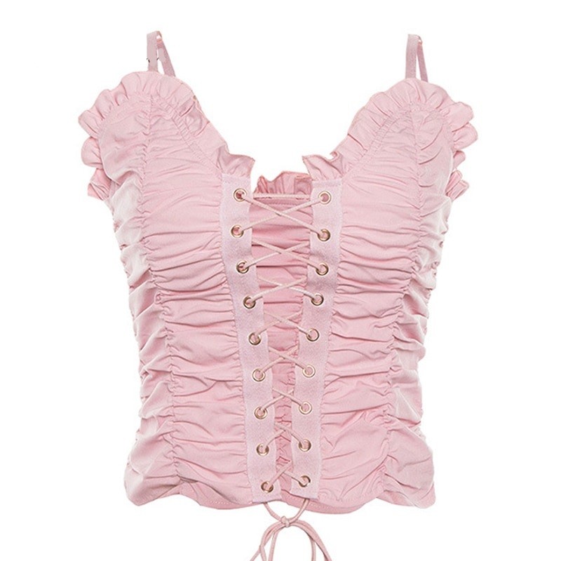 Plisserad damtopp med snörning