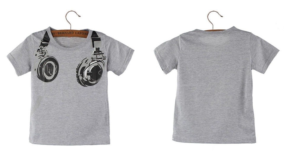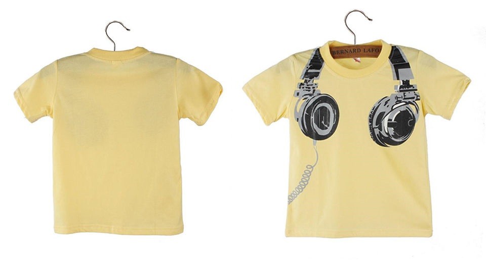 Vacker T-shirt med hörlurstryck. Material av hög kvalitet garanterar ditt barns komfort.