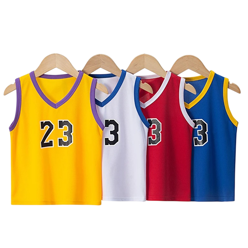 Pojkarnas sportiga set med linne och shorts med gummiband nummer 23 V-hals lätt sommar träningsset