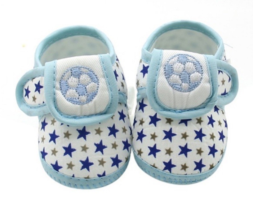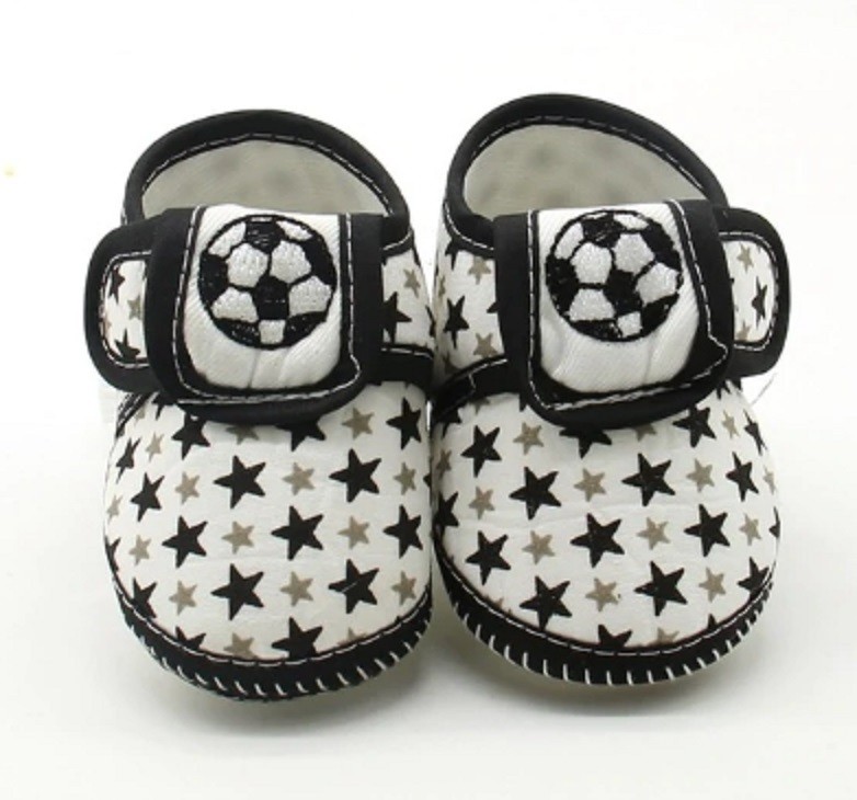 Pojktofflor med boll är lämpliga för små fotbollsspelare i barnvagn, bärsele eller bilbarnstol.
