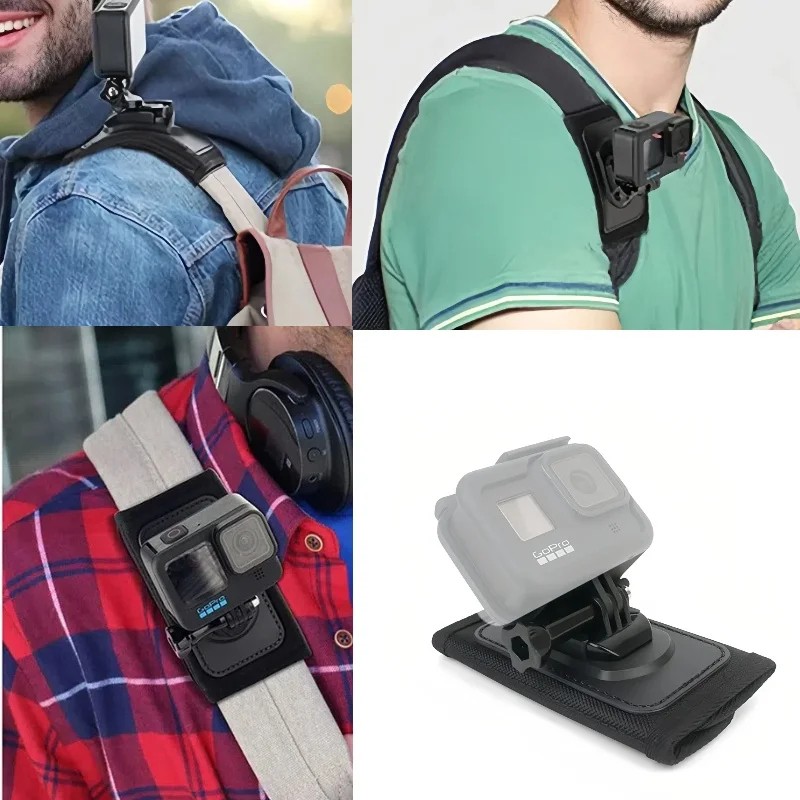 Startsida Startsida Foto, ljud-video, gaming Popruh på ryggsäck för actionkamera 12,5 x 6,6 x 2 cm 360° vridbar snabbkopplingsfäste Axelmontering GoPro DJI Insta360