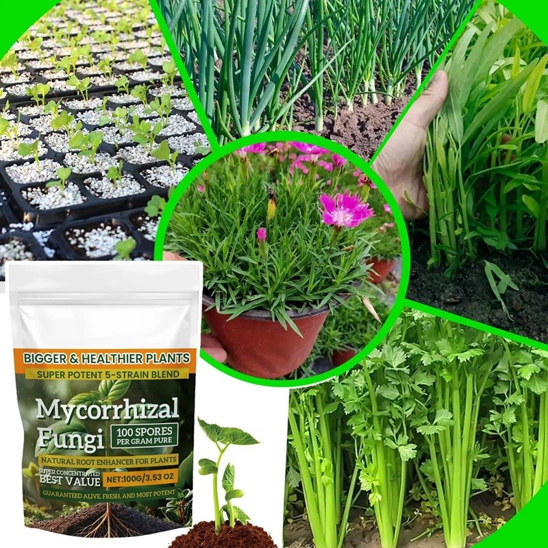 Förpackningen innehåller 100 g växtgödningsmedel i pulverform, vilket är en praktisk mängd för mindre trädgårdsarbeten eller inomhusodling av växter. Den kompakta förpackningen möjliggör enkel förvaring bland trädgårdsredskap och lätt hantering vid användning.
