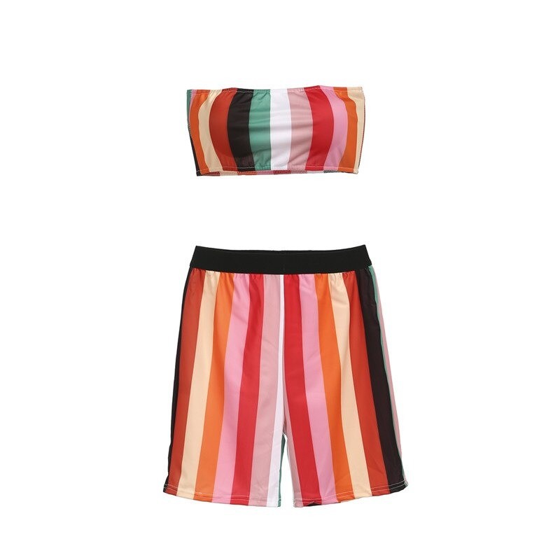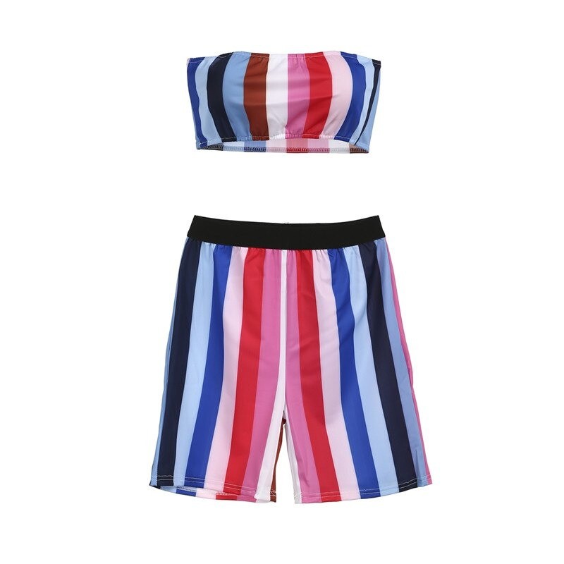 Randig crop top och shorts för kvinnor