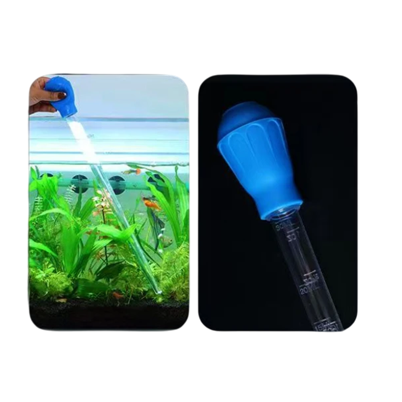 Denna förlängda pipett med en längd av 45 cm och en volym av 50 ml är en praktisk hjälpare för dagligt underhåll av akvariet. Den möjliggör bekväm och noggrann rengöring av botten, borttagning av matrester, smuts och avföring, utan att störa miljön för dina fiskar. Den är lämplig för sötvattens- och saltvattensakvarier och tack vare den enkla designen uppskattas den av både nybörjare och erfarna akvarister. Den mjuka sugkoppen möjliggör enhandshantering och tack vare den förlängda röret når du även djupare delar av tanken. Pipetten är återanvändbar och lätt att rengöra.