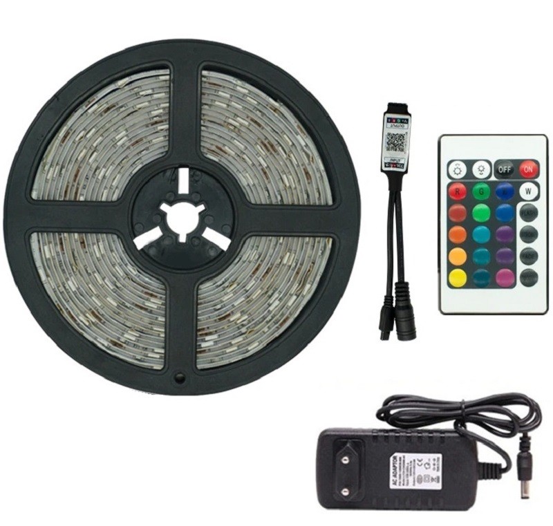 RGB LED-remsa är perfekt för att lysa upp och liva upp interiören. Remsan har 18 lysdioder per meter. Jämfört med konventionell belysning sparar den energi och har lång livslängd . RGB-remsan lyser upp i många färgvarianter. Den kan styras med en mobiltelefon via Bluetooth eller med fjärrkontrollen som ingår i paketet. Remmen finns i flera längder som kan kortas efter behov. Du kan växla mellan olika färger, justera ljusintensiteten och andra funktioner (blinkande etc.).