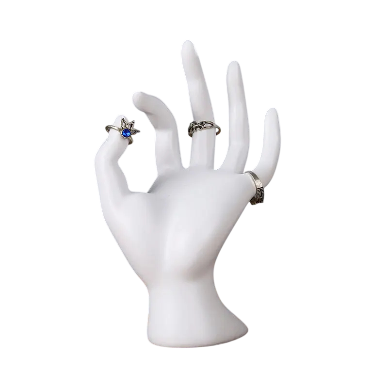 Ringställ för smycken hand 18 × 11,5 × 8 cm plastställ för ringar dekorativ figur hand smyckesorganisatör
