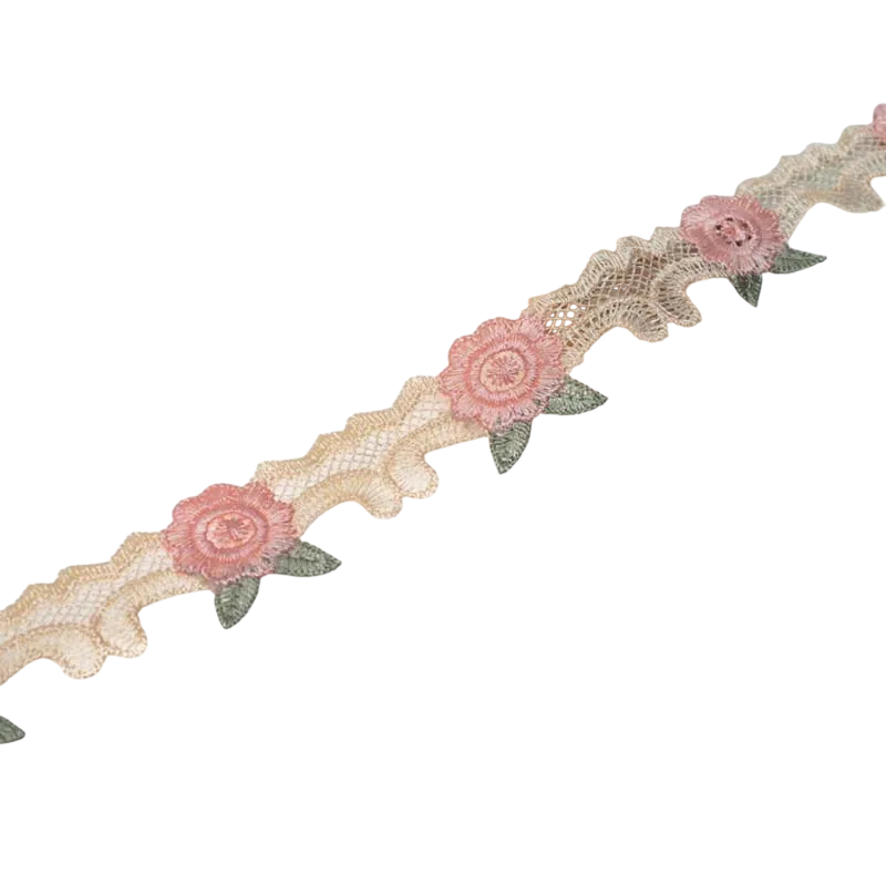 Detta dekorativa element kan användas vid dekoration av klänningar, kjolar, blusar eller barnkläder. Spetsen är också lämplig för att skapa modeaccessoarer, bröllopsdekorationer eller olika DIY-projekt. Rosa spetsdekoration ger produkterna en fin och elegant look.