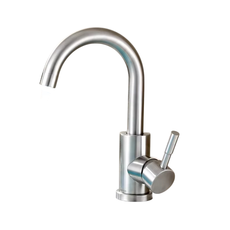 Elegant rostfri badrumsblandare med spakreglering för varmt och kallt vatten. Hållbar, lätt att underhålla och passar alla moderna handfat. Fullständig beskrivning