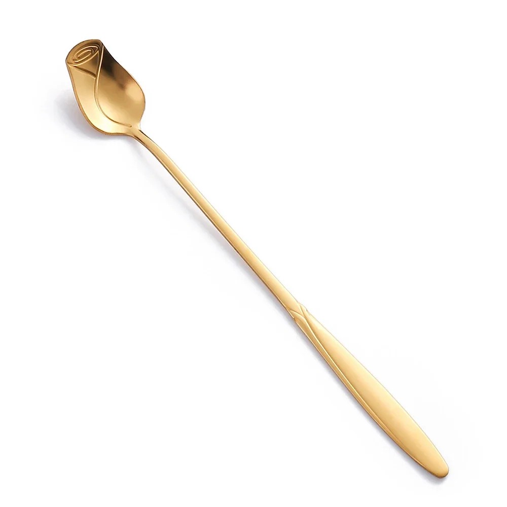 Rostfri te-sked 15,2 cm Lång rörsked för te kaffe honung dessert sallad Dekorativ sked i rostfritt stål köksredskap
