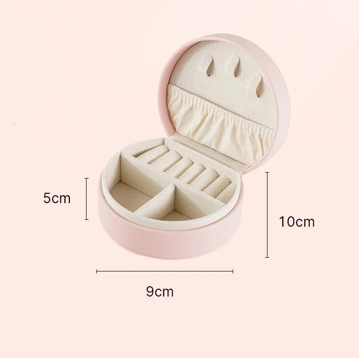 Rund mini smyckeslåda med organisatör för ringar och halsband 9 × 10 × 5 cm i konstläder färgglad förvaringsbox för små smycken