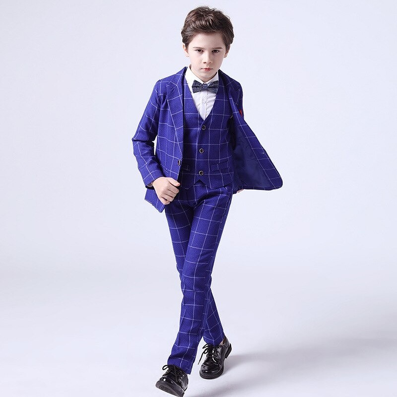 Rutig dräkt för pojkar med väst B1310