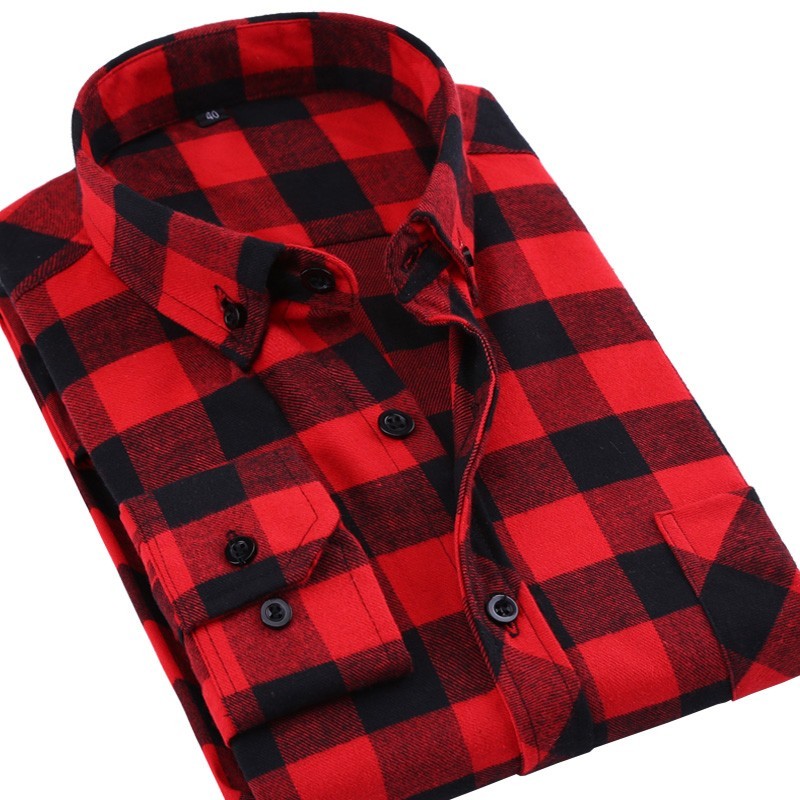 Rutig herrskjorta med mönster - Röd-svart