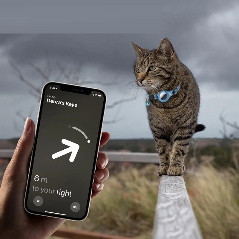 Denna praktiska säkerhetskrage är den perfekta lösningen för kattägare som vill ha koll på sin katts rörelser. Kragen är utrustad med ett reflekterande band för ökad synlighet i mörker, en bjällra och en integrerad hållare för lokaliseringschip (till exempel AirTag), vilket möjliggör enkel spårning av djuret. Den justerbara längden säkerställer en bekväm passform för katter av alla storlekar.