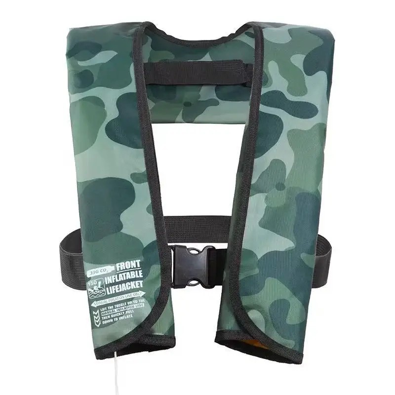 Praktisk uppblåsbar väst med manuell aktivering ger stabil flytkraft, bekväm bärkomfort och kamouflage-design som passar för fiskare och vattensporter. Fullständig beskrivning