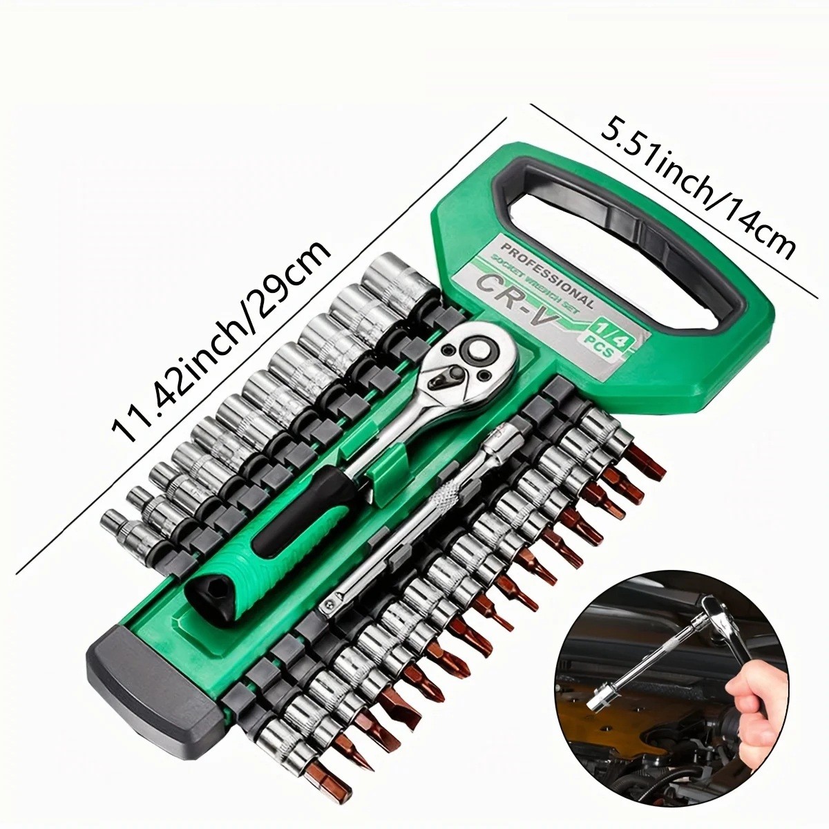 Sats 28 st spärrnyckel 1/4 hylsor förlängning 72-tandad mekanism mekanisk verktygssats