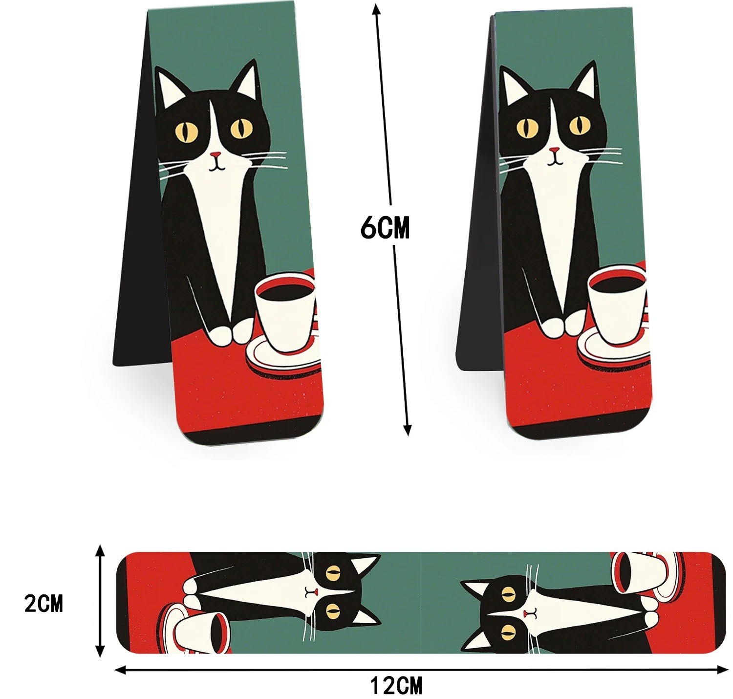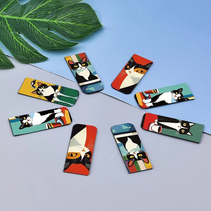 Denna sats är idealisk för läsare som vill ha sin plats i boken tydligt markerad. Med fem stycken kan du använda bokmärkena samtidigt i flera böcker eller dela dem mellan familjemedlemmar. Den magnetiska konstruktionen hjälper till att hålla sidan ordentligt på plats, vilket du kommer att uppskatta både hemma och på resor. Kattmotivet ger dessutom varje läsning en trevlig och personlig atmosfär.