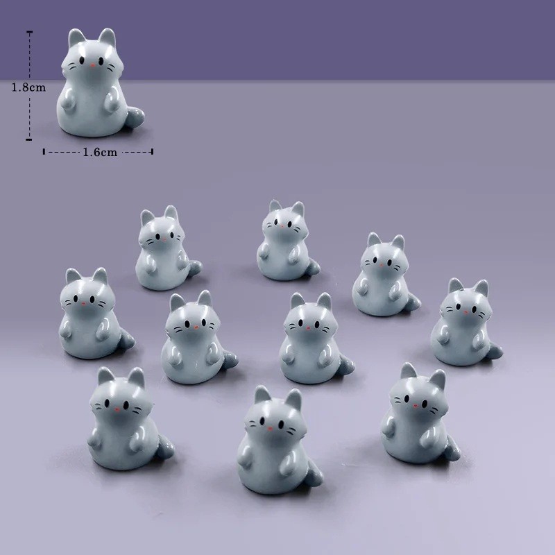 Sats med 10 st mini kattfigurer i resin dekorationer för mini trädgård krukor akvarium eller kreativt skapande