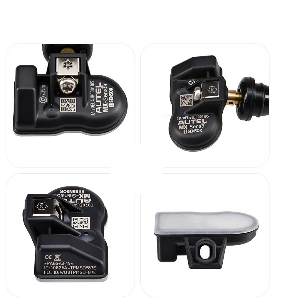 Autel MX-Sensorer är utformade för både professionell och vanlig serviceanvändning och möjliggör enhetlig typ av TPMS-sensorer på fordonet. Tack vare stöd för två frekvenser kan de ersätta en stor mängd originaldelar. Metallventilen ger en stabil installation och långvarig stabilitet. Den kompletta satsen med fyra stycken är idealisk vid byte av alla hjul eller vid återställning av hela TPMS-systemet. Kompatibiliteten måste alltid verifieras enligt det specifika fordonet.