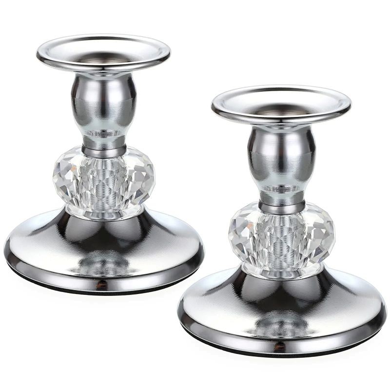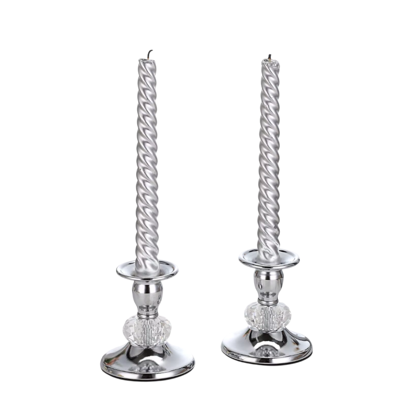 Sats med metallljusstakar för koniska ljus med kristallelement 2 st metallställning ljusets diameter 2,3 cm bordsdekoration för bröllop och fester