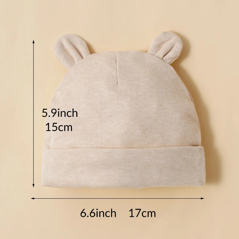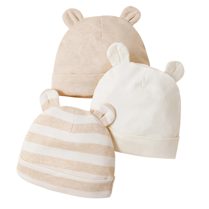 Set 3 st kojeneckepannor med öron 17 × 15 cm 0–12 månader Bomullsbabyhattar i nude färg