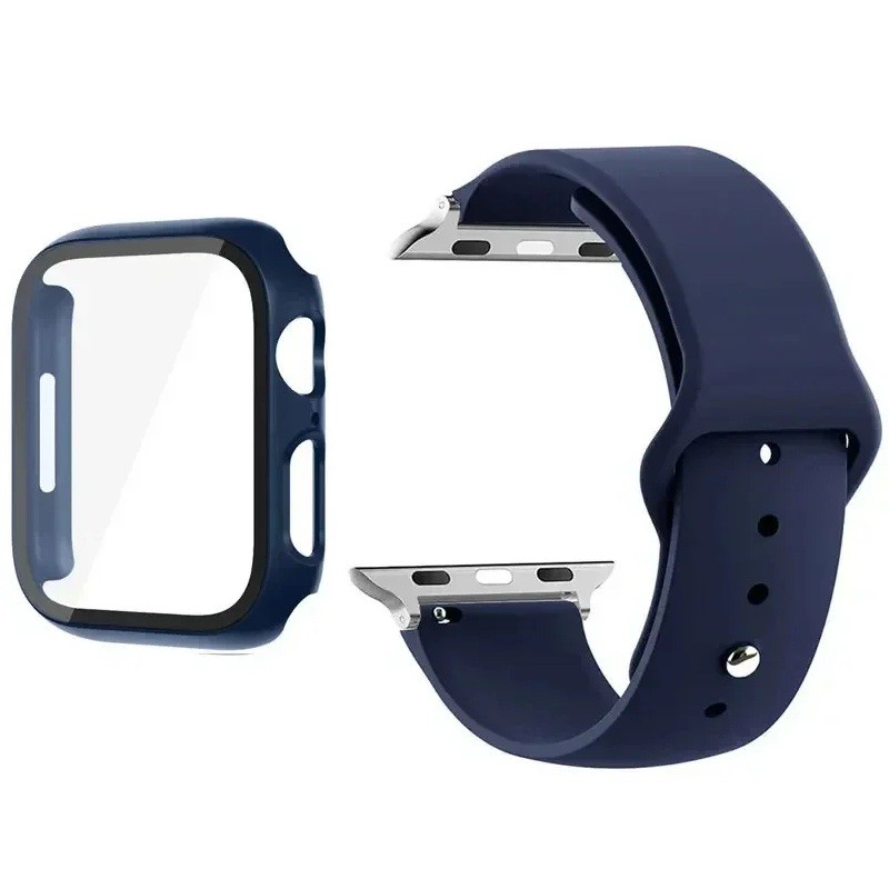 Set av härdat glas, ramfodral och armband för Apple Watch 41 mm Series 9/8/7 – 9H skyddsglas för skärmen, matt klockfodral