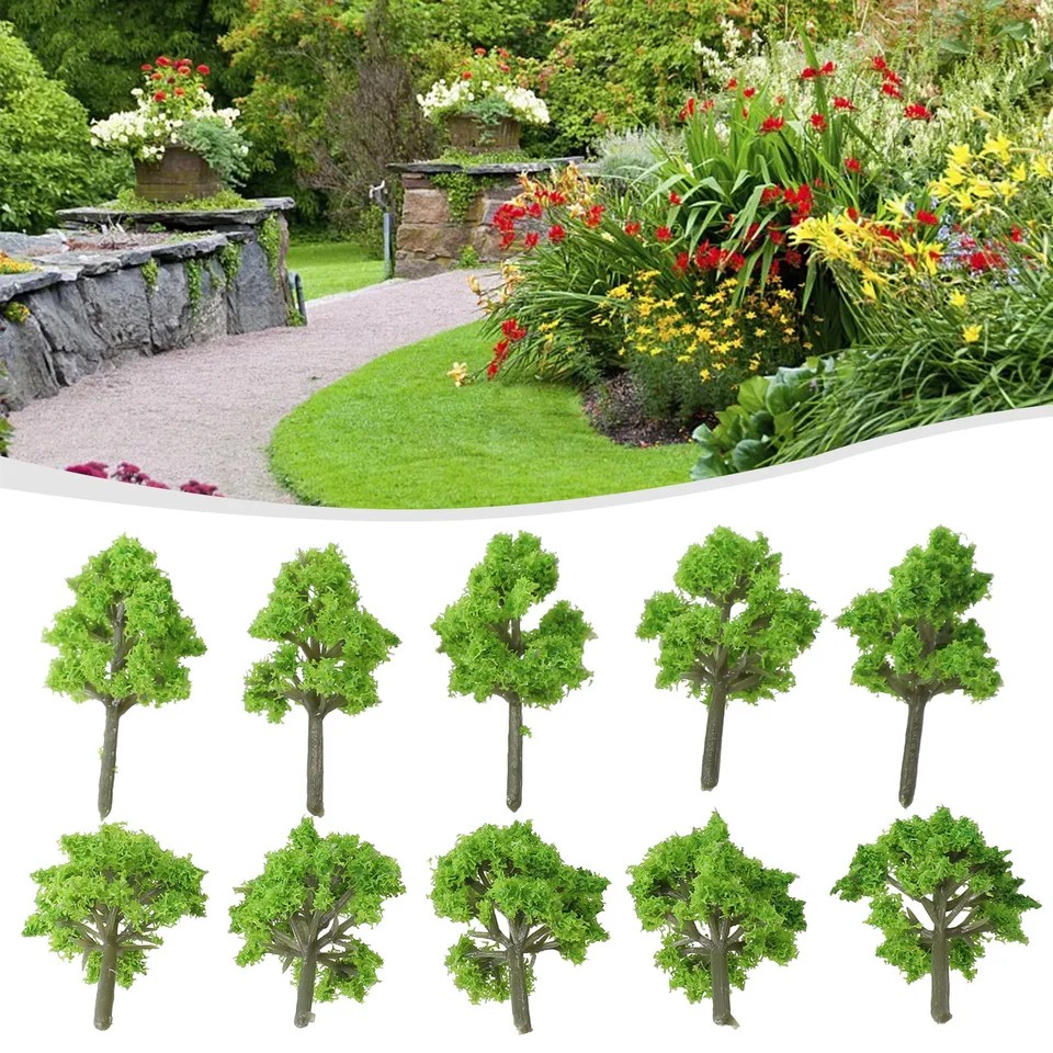Set med 10 st modellträd 4 cm Miniatyrdekoration för dioramor och modellandskap