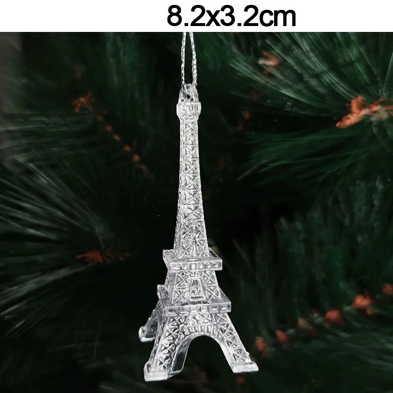 Set med 5 st transparenta plastdekorationer Eiffeltorn 8,2 × 3,2 cm Jul- och året runt-dekor för gran eller inredning