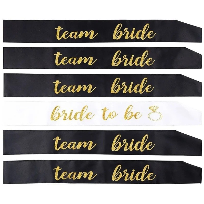 Set med 6 bröllopsband Team Bride + Bride To Be Satängtyg 156 x 9,5 cm Sista festen innan bröllopet Dekoration