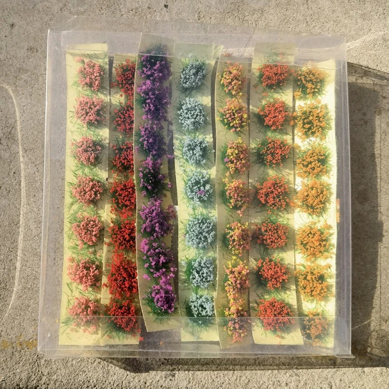 Set med 7 blommor 6–8 mm 49 st Självhäftande modellgräs Färgade vegetationsband för diorama och mini landskap