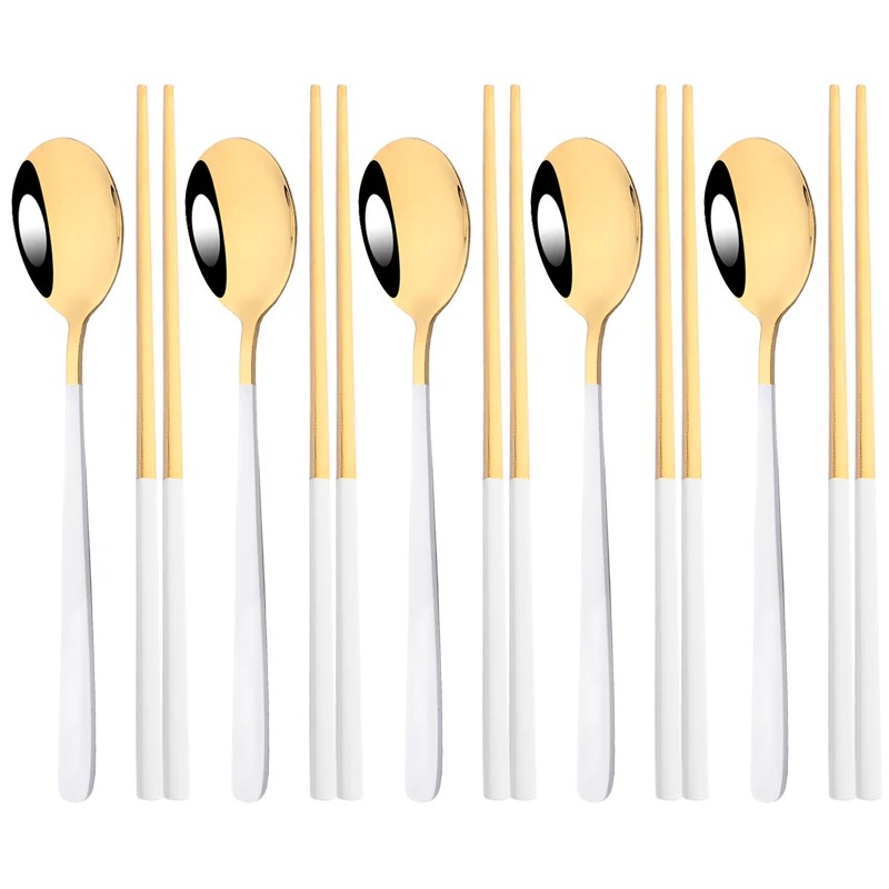 Om du letar efter praktiskt koreanskt set med bestick som förenar stilfull design och funktionalitet, är detta set med skedar och ätpinnar ett utmärkt val för varje hem.