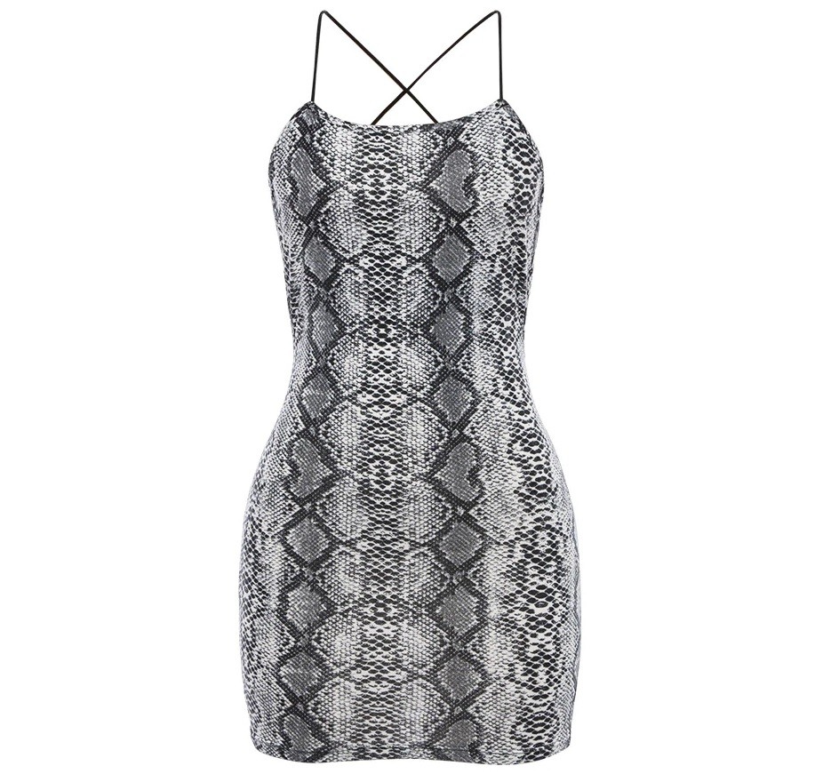 Sexig miniklänning för kvinnor med ormskinnstryck.