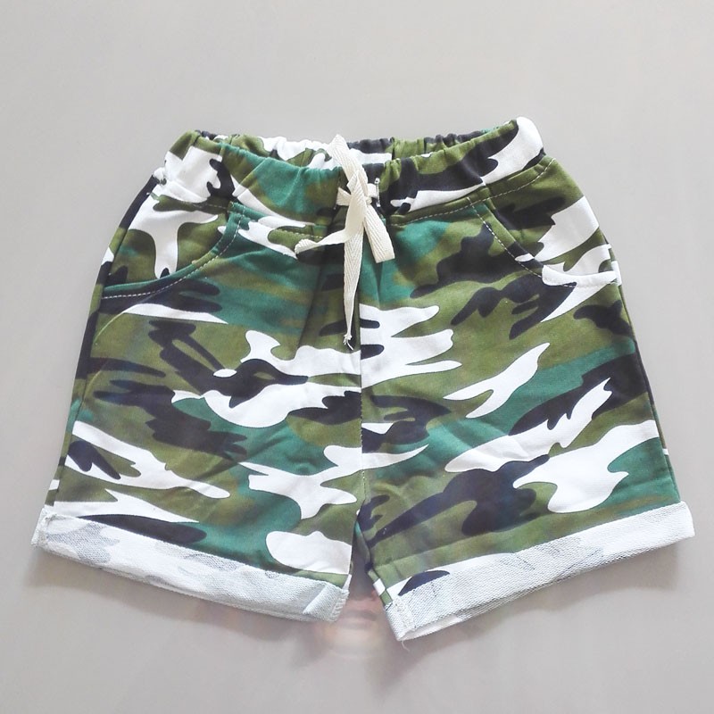 Vackra pojkshorts med kamouflagemönster i olika färger.